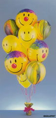 Three regular mylar messages and five latex balloons.