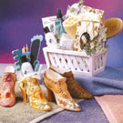My Fair Lady: This dainty Victorian style ceramic shoe holds everything she needs for a relaxing manicure and pedicure. Includes a nail brush, toe separators, a foot file, nail files, cuticle sticks, and a two ounce bottle of lotion. Then use the ceramic piece on your dressing or night table.