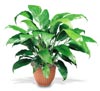 Broad, emerald Spathiphyllum leaves gracefully arch over a clay pot. Perfect for an office or den. |