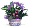 A pastel basket with purple ribbon is the setting for this garden flower. It brings an endearing quality to anywhere it sits. (Plants will vary depending on seasonal and regional availability.) |